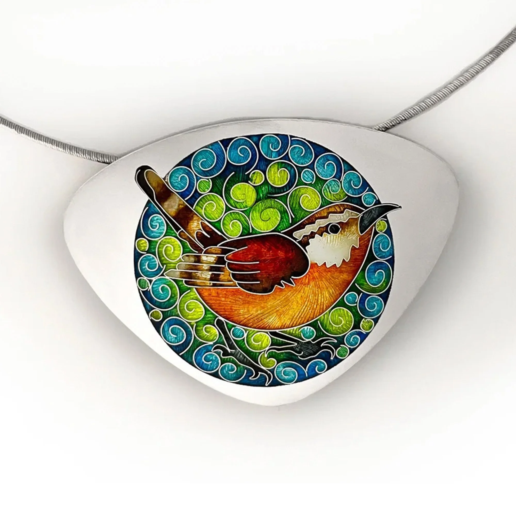 This is one of my favorite designs. Best suited for intermediate enamelists, this project focuses on fusing a fine silver base, soldering a bail, and developing precise wire placement. The real magic happens in the delicate shading, where careful enamel layering brings the Carolina Wren to life.