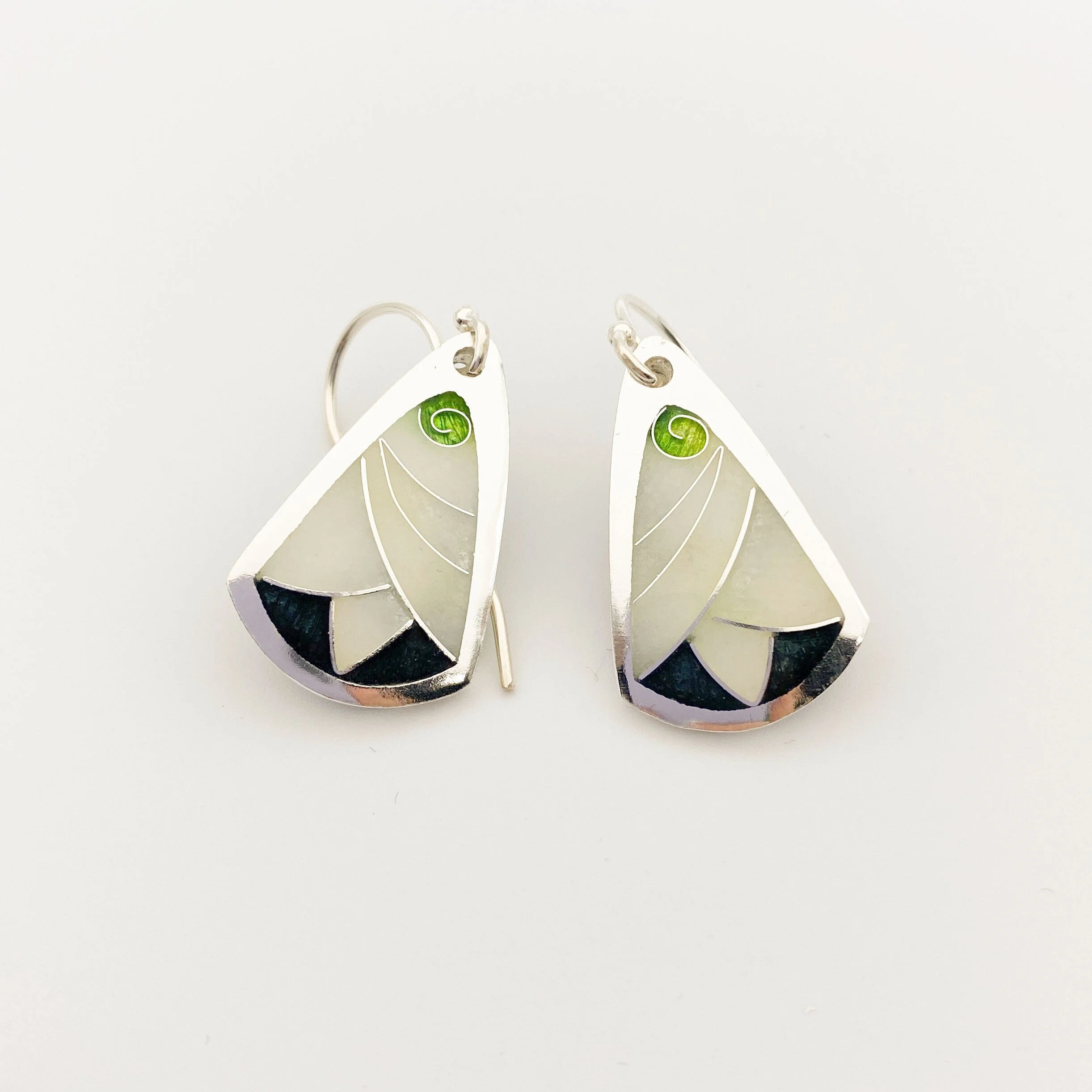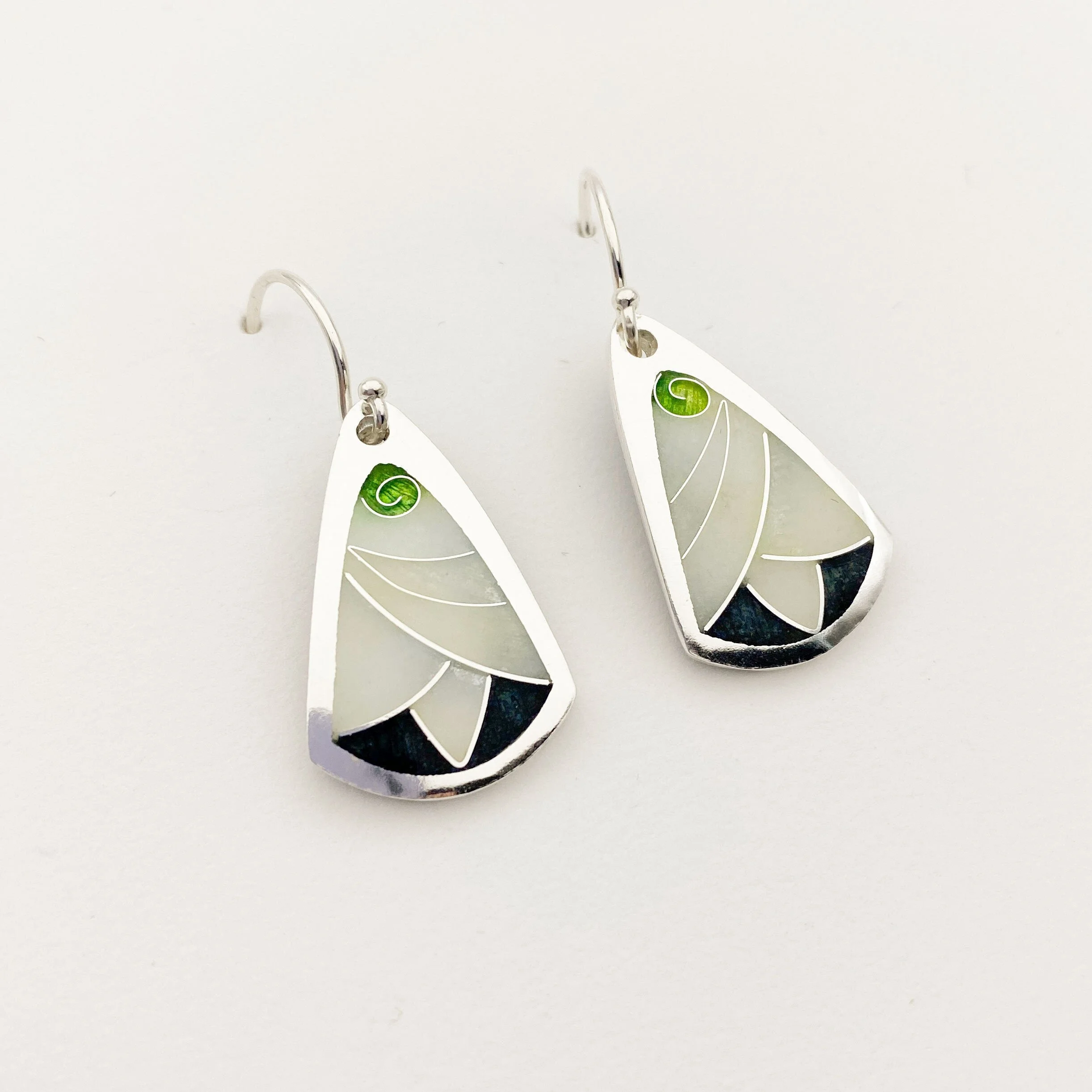 Delicate White Lotus Flower Dangle Enamel Earrings - Cloisonné & Champlevé Enamel on Fine Silver w/ Sterling Ear Wires by Sandra McEwen